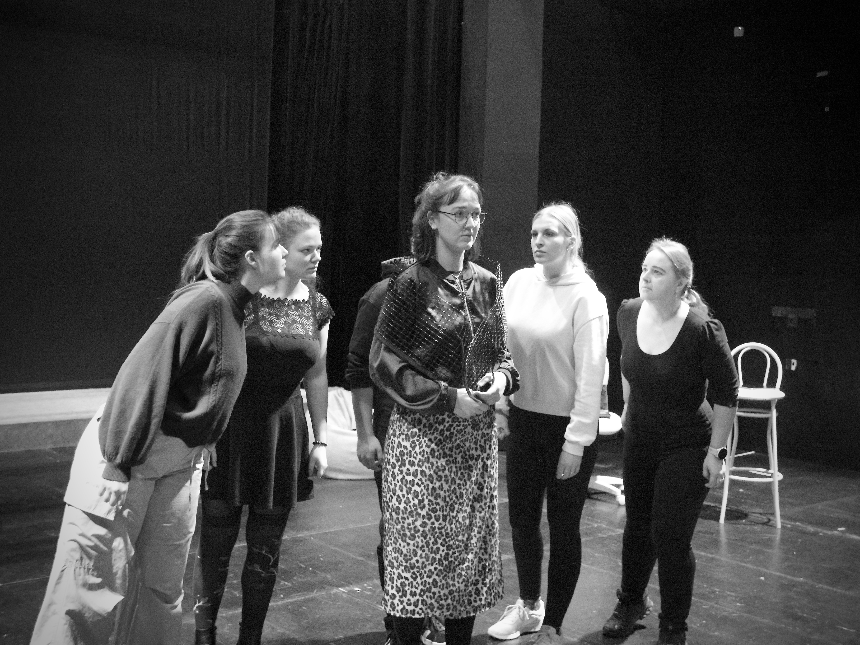 Jako by se z běžného světa vytrácely barvy a všechny pohltil online svět. I takto by se dala prezentovat scéna a kostýmy, které pro podzimní inscenaci připravila studentka Ateliéru scénografie Divadelní fakulty JAMU Kristina Komárková.